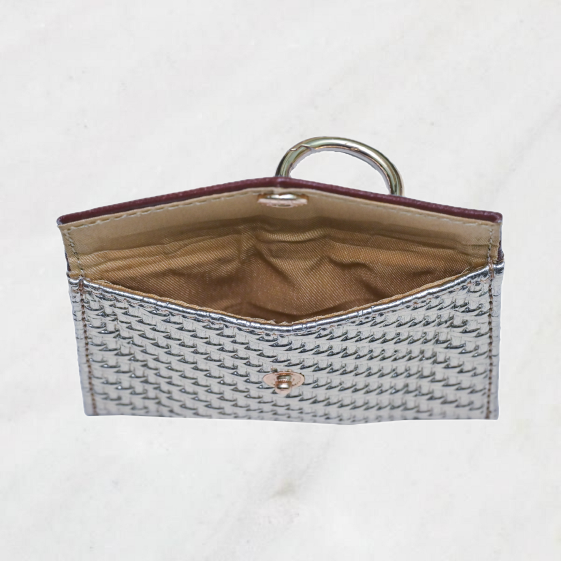 Stylish and versatile accessory to store all your essentials it's compact size and durable construction makes it a must have. The metal ring can be used to catch it within the purse or attached to a key ring.