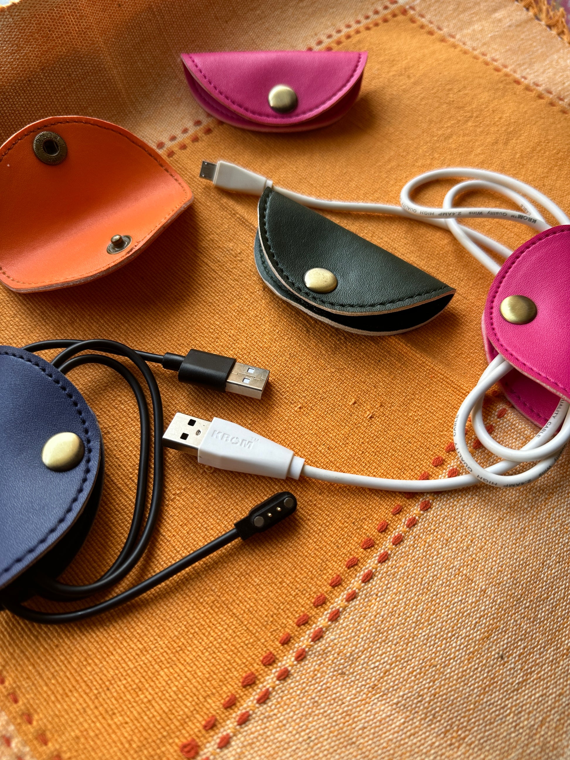 · Keep your chords organised with us leak, vegan leather cord holder.