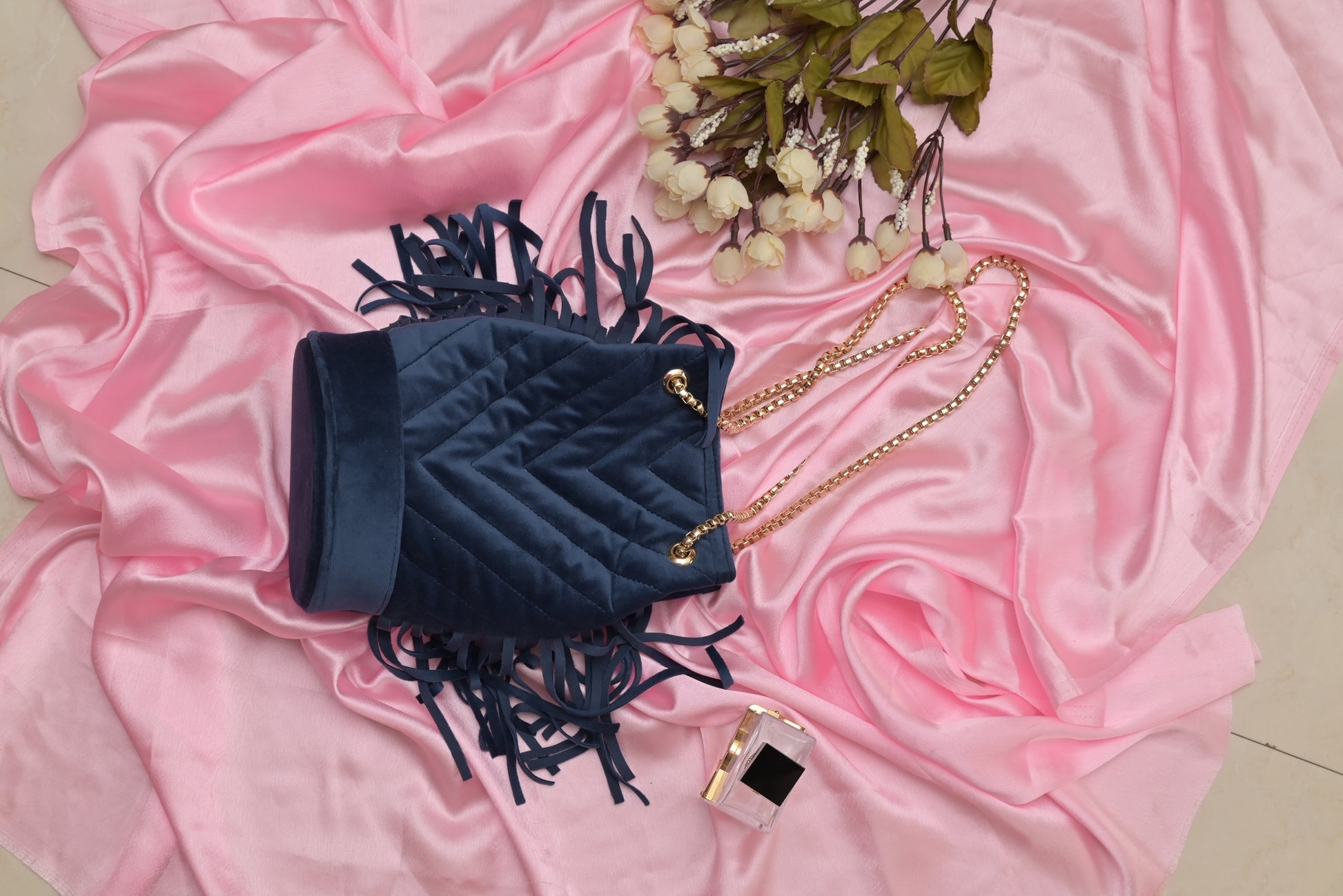 · Chevron quilted with tassels