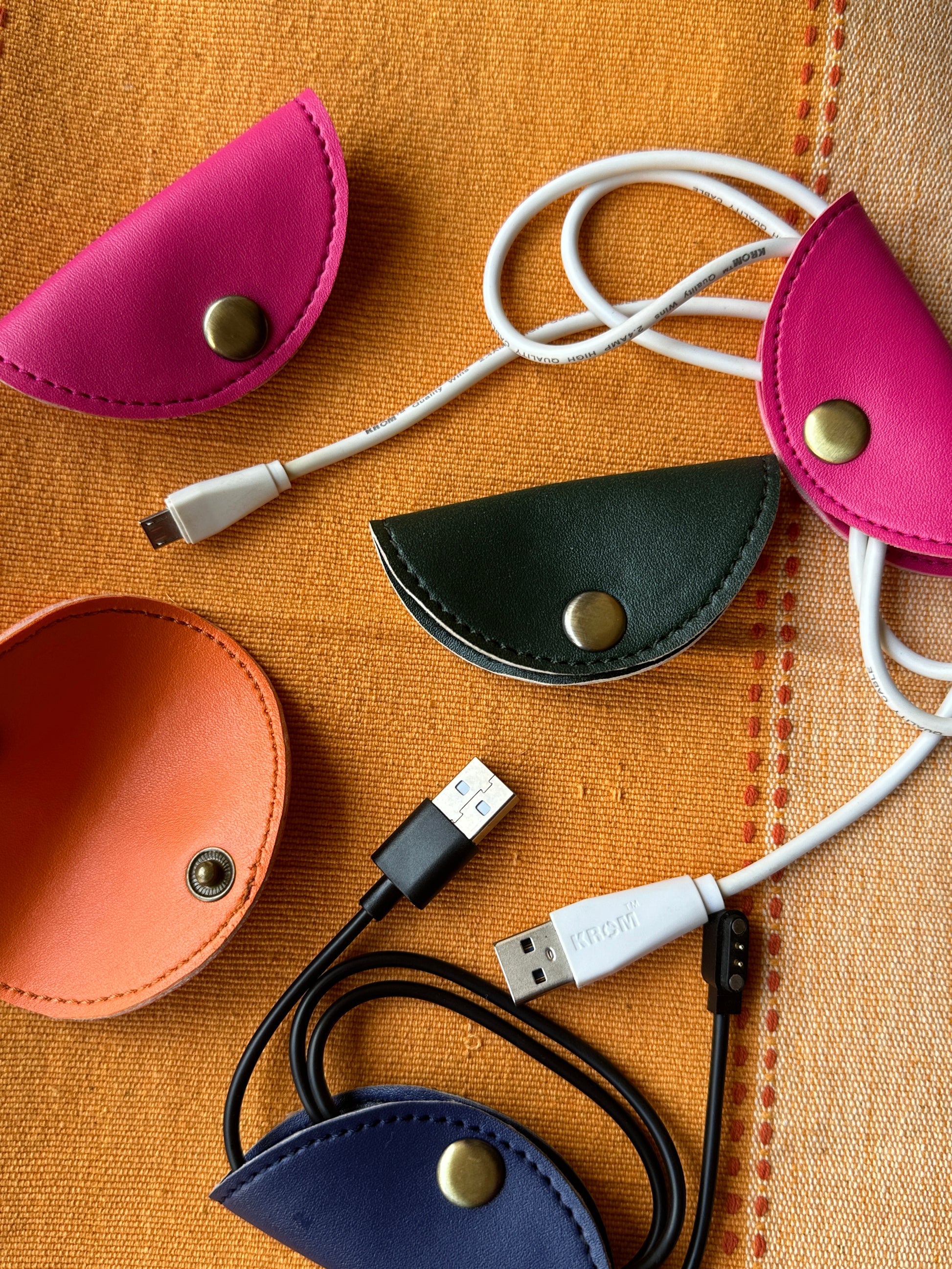 · Keep your chords organised with us leak, vegan leather cord holder.