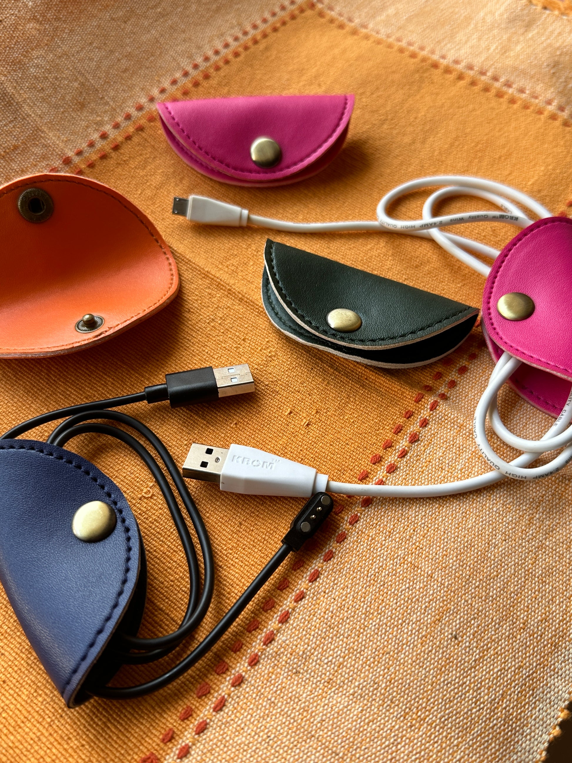 · Keep your chords organised with us leak, vegan leather cord holder.